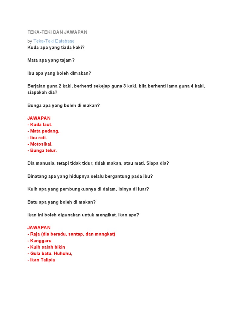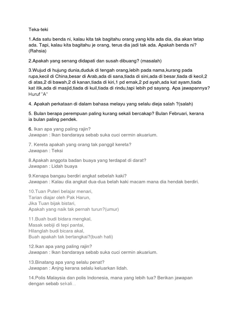 Contoh Teka Teki Banyak Banyak Mata Mata Apa Paling Besar Yang Penting Untuk Ibubapa Pendidikan Abad Ke 21